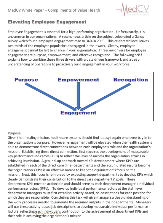 Share this article with your practice manager, group administration, or hospital administration to make sure they are working on this or see what resources they have to get at this work. If they need help in getting started, they should consider connecting with John Rezen at Value Health. The key is to be able to have your baseline, you would expect your team to report to you the improvement(s) made and the results.